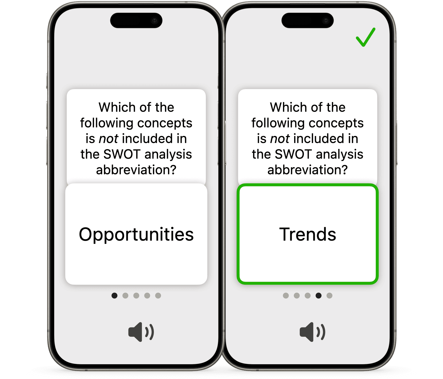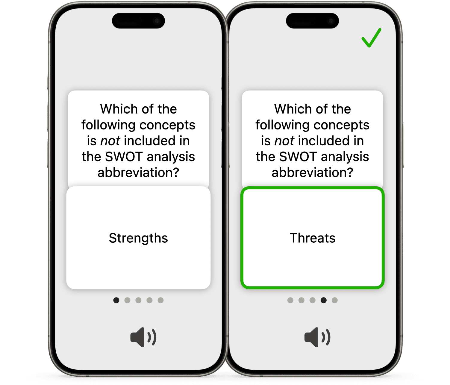 • If you enable automatic playback of sounds or reading aloud, you can control the quiz without even looking at the screen. After some training, of course.
